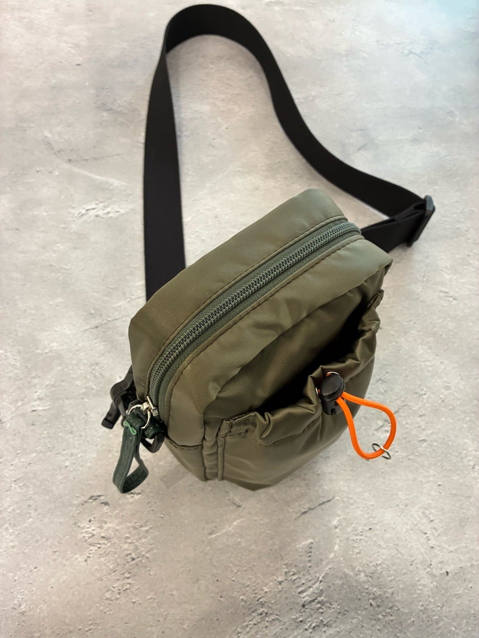 ナイロン特有のカジュアルな質感を、シルバーの落ち着いた輝きが上品に引き締めます。