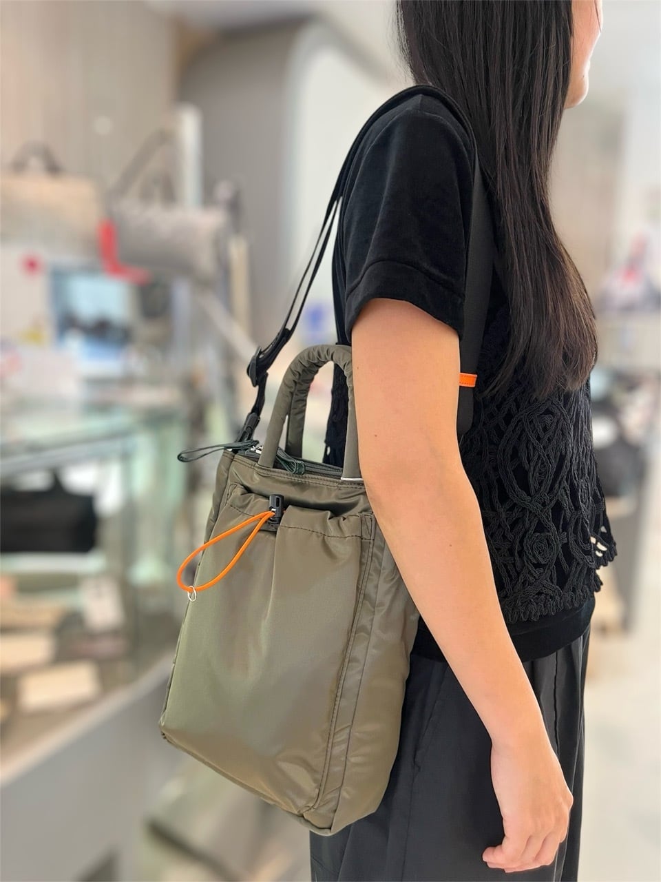 iPad Airもすっぽり収まるサイズで、ハンドでもショルダーでも持てる2WAY仕様。デイリーからお出かけまで、こなれた印象で活躍します。