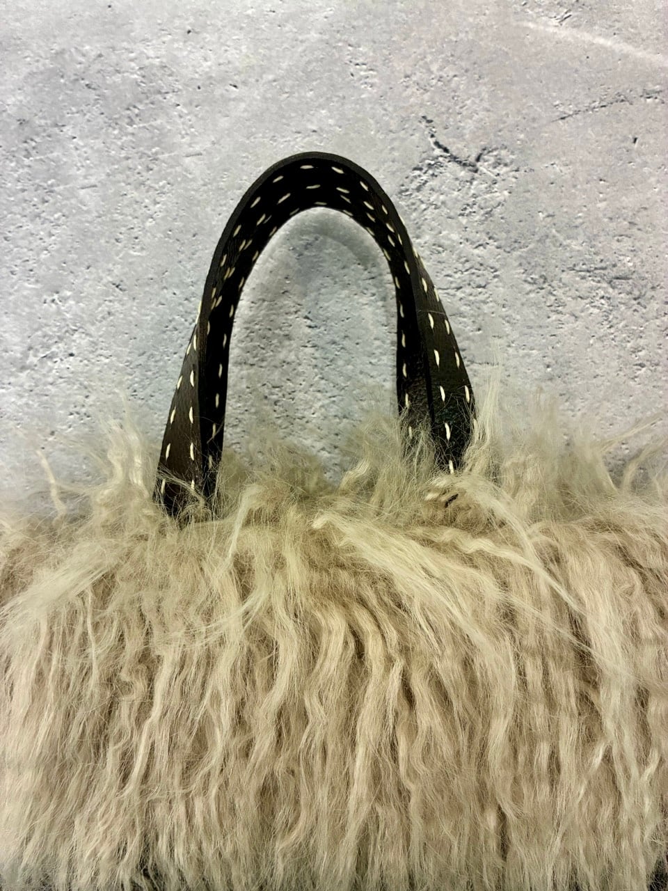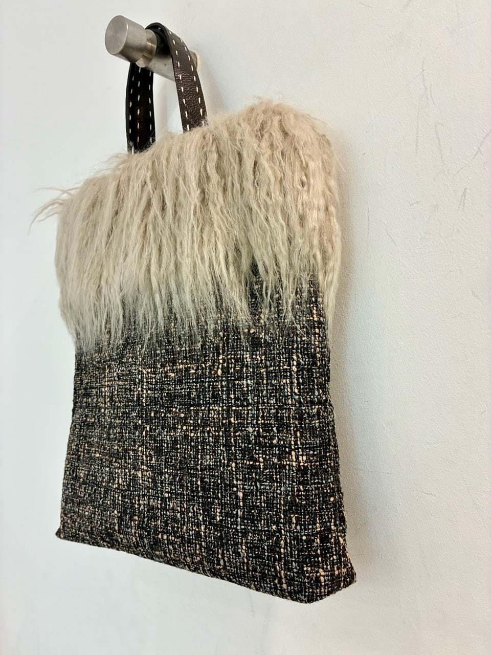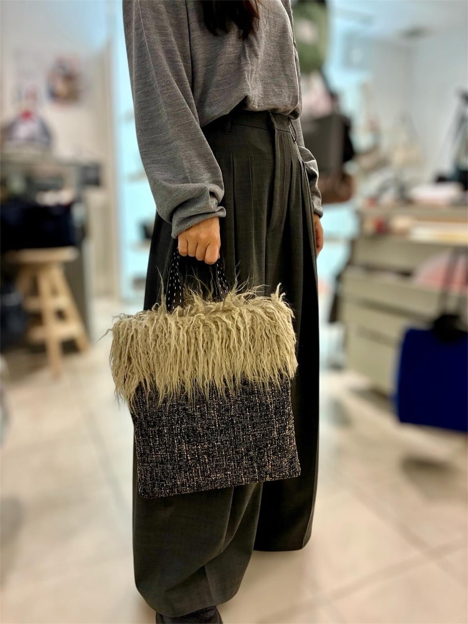 可愛くなりがちなファーバッグを、ツイードとの組み合わせで上品に仕上げた“大人のファーバッグ”。