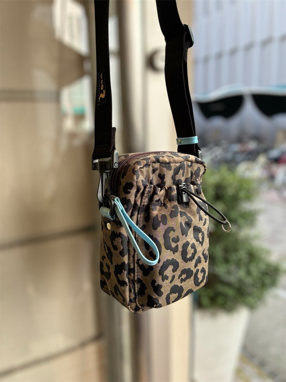DEUX MILLE ドゥミル ボンディングナイロン×レザー斜めがけミニショルダー[レオパード]