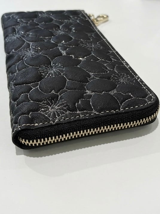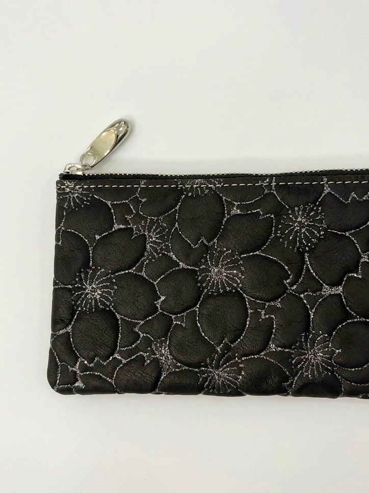 カラーは、ブラックにはシルバーの桜。シルバーの金具でモード感を。