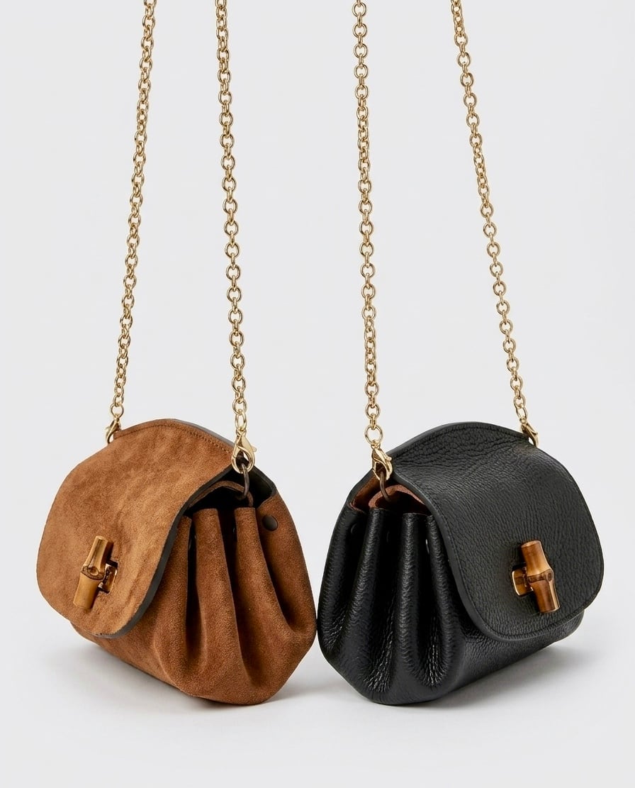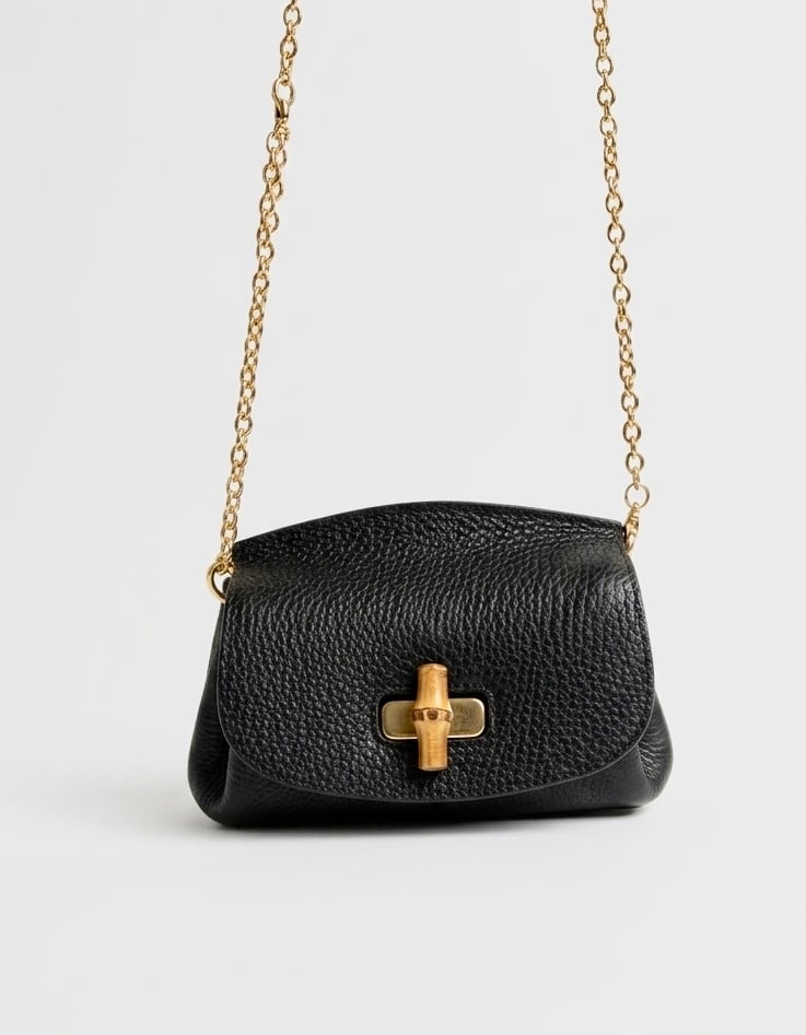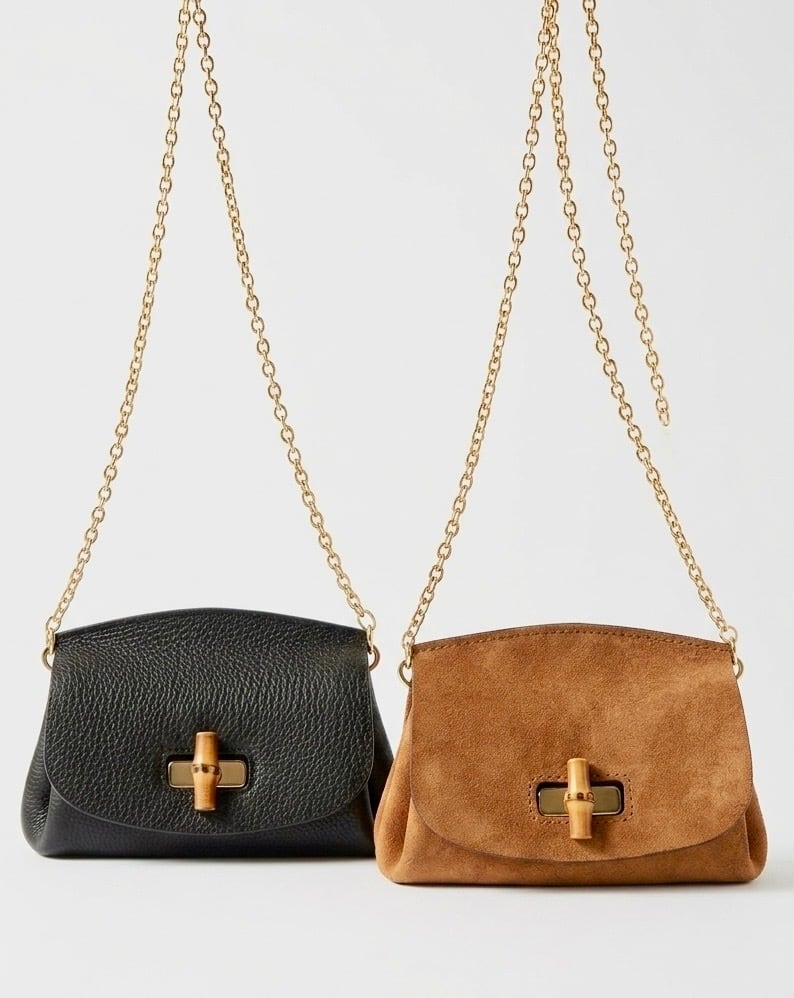 バンブーの開閉金具を添えた、ウォレットショルダー。
