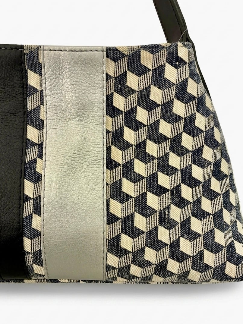 幾何学柄に2本の縦ラインを効かせた、洗練されたデザイン。